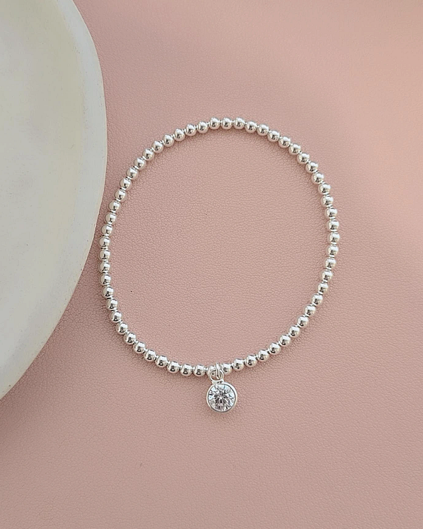 ✨ Pulsera elastizada en Plata 925 con bolitas y dije de cubic zirconia ✨