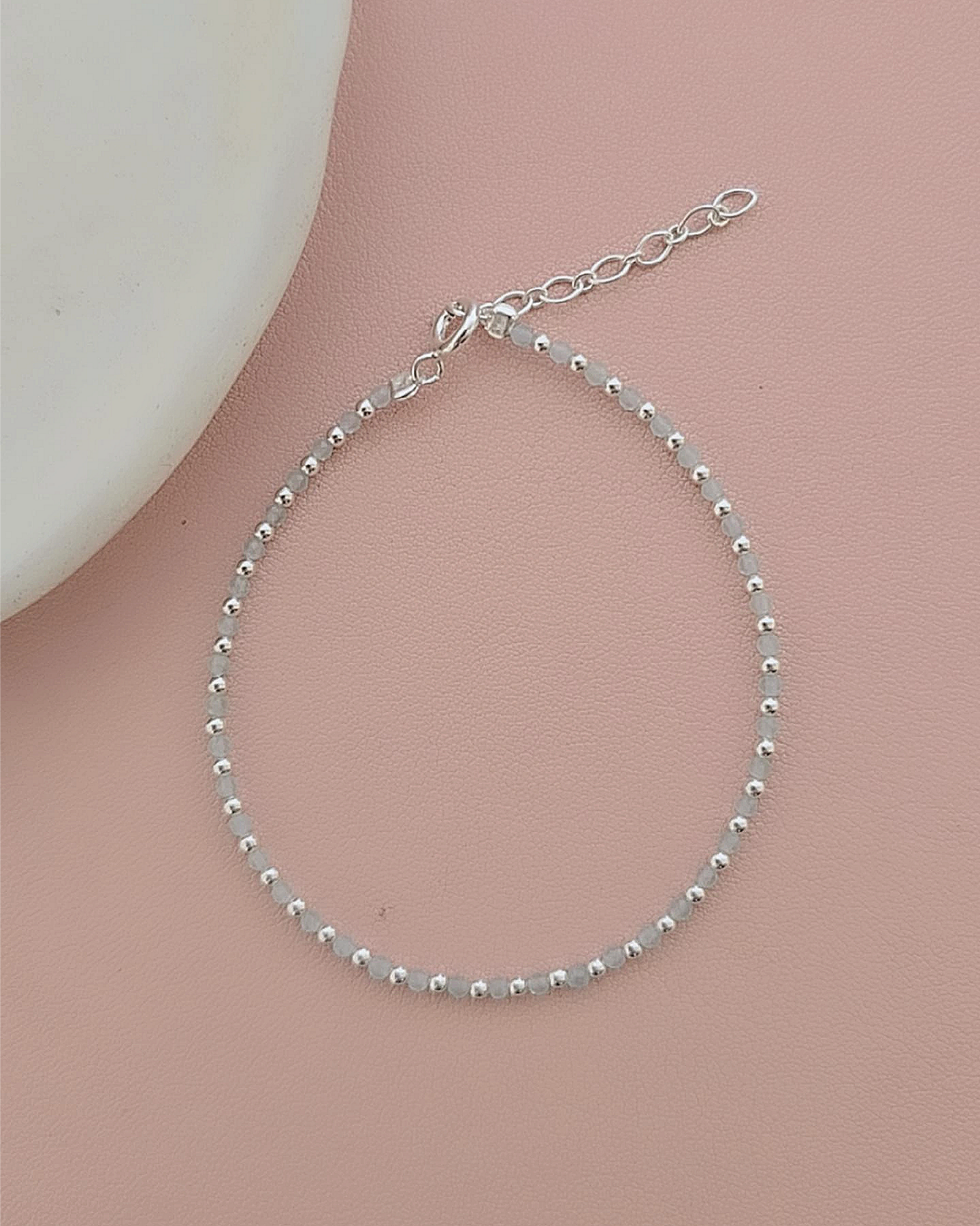 Pulsera delicada de Plata 925 con mini cuentas intercaladas de piedras naturales aquamarina. Su diseño sutil y elegante la convierte en una joya versátil, ideal para usar sola o combinar con otras pulseras. ✨