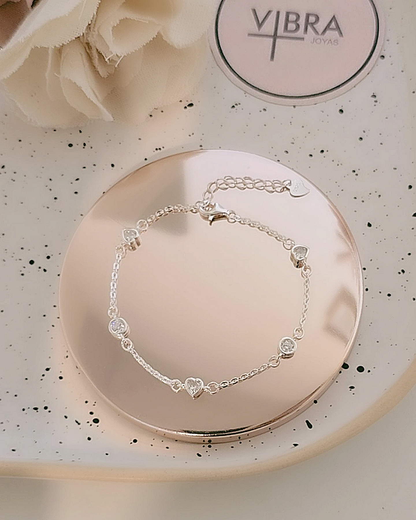 Diseñada en Plata 925, con pequeños corazones con circones que aportan un brillo suave y femenino.
