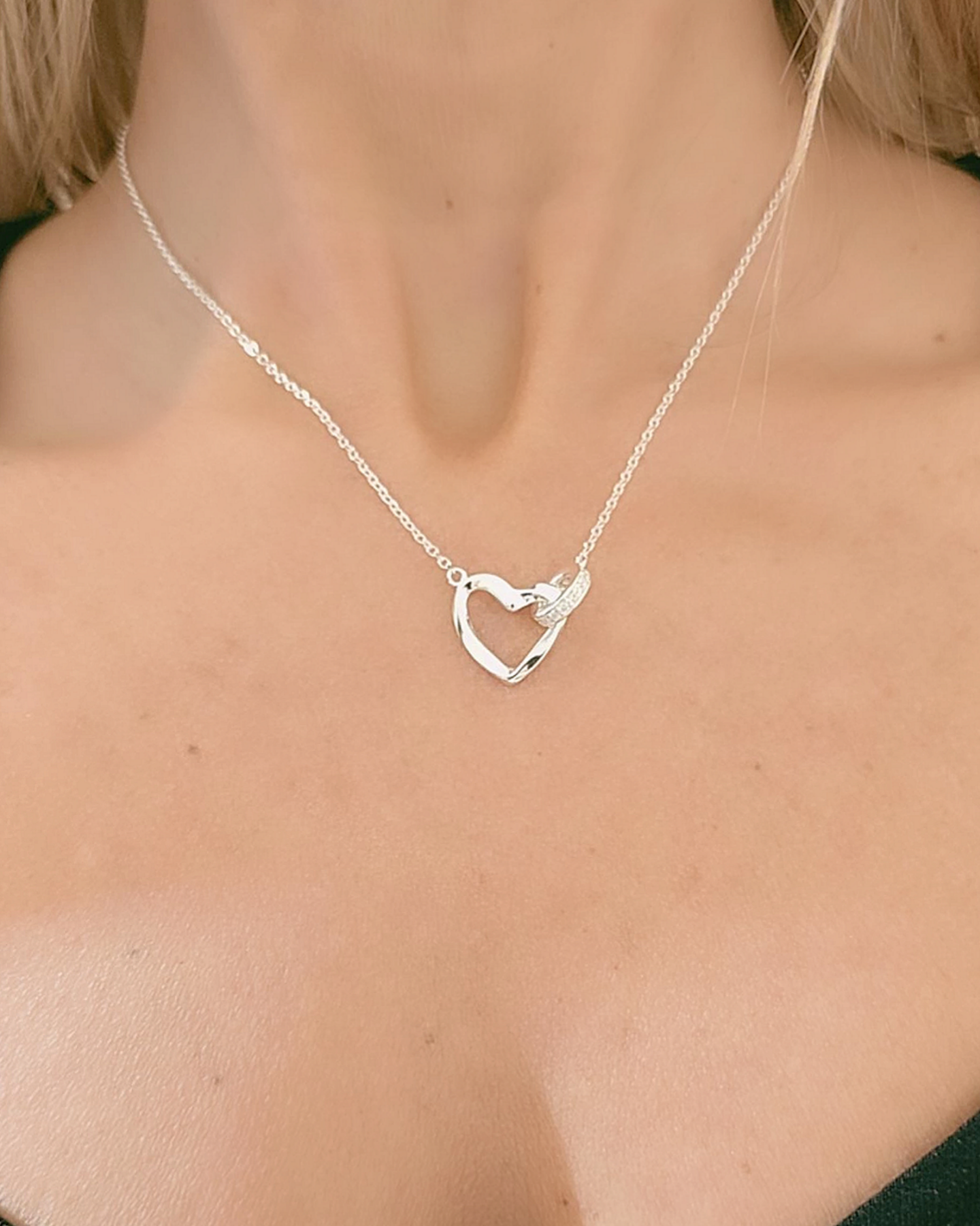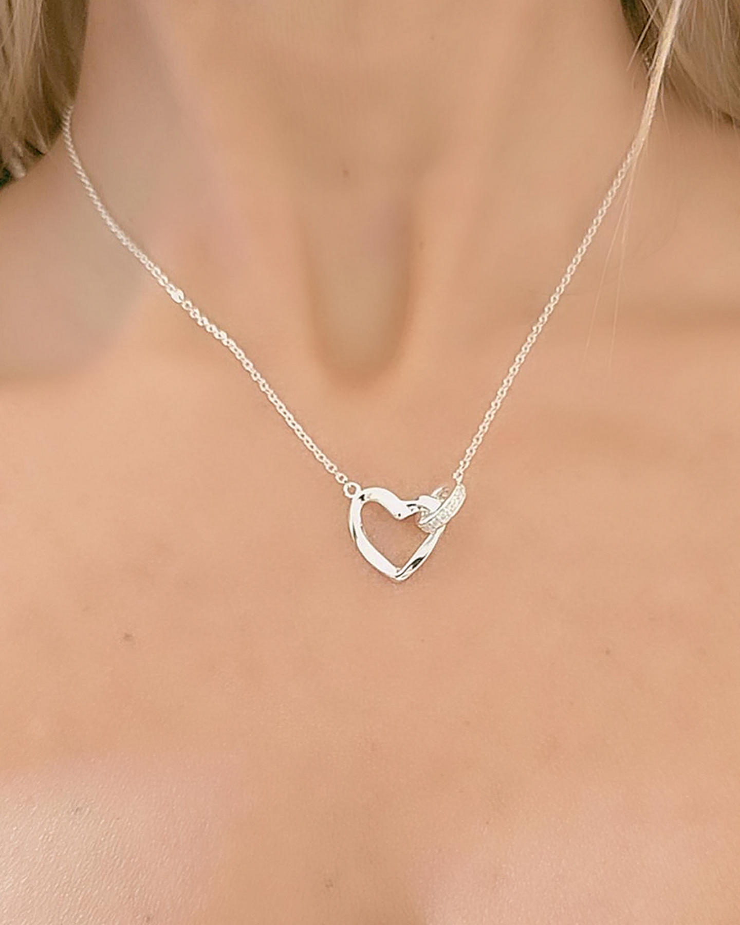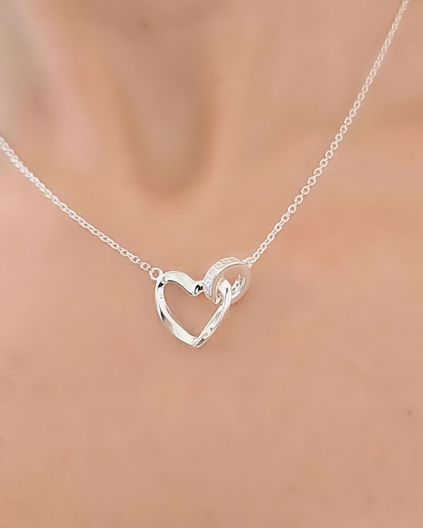 El Collar Corazón & Brillos en Plata 925 combina un corazón minimalista con un aro de mini circonitas baguette que aporta destellos sutiles y un movimiento hermoso.