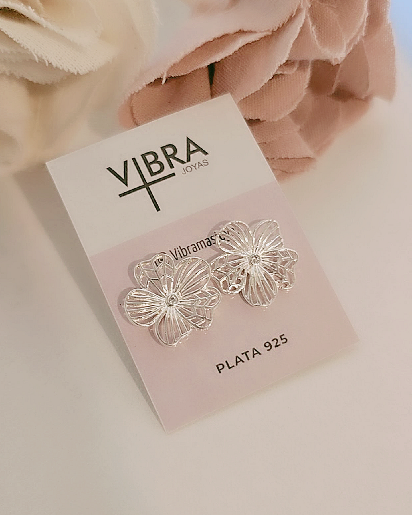Aros con diseño de flor calada, delicados y llenos de detalle. Realizados en Plata, destacan por su brillo y su trabajo fino, ideal para quienes aman las piezas femeninas y elegantes.
