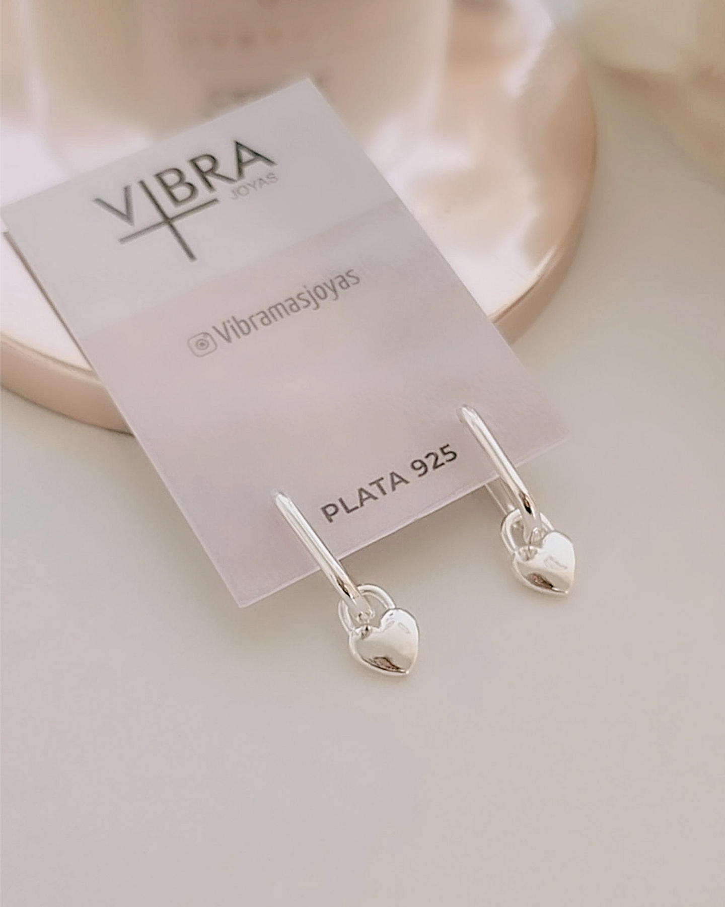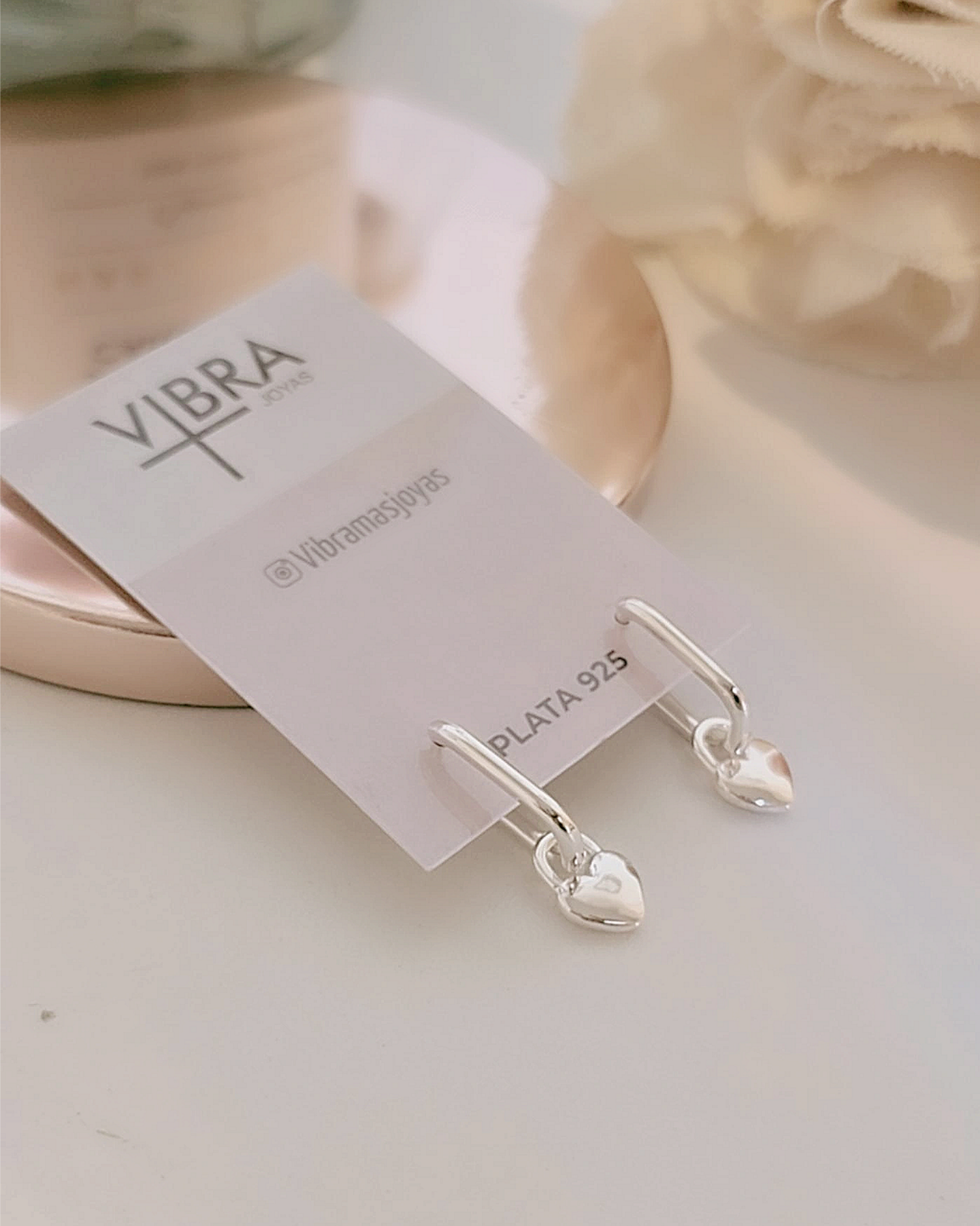 Argollas rectangulares de Plata 925 con dije corazón colgando