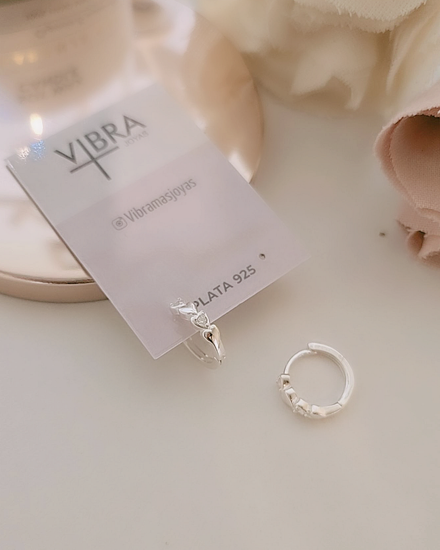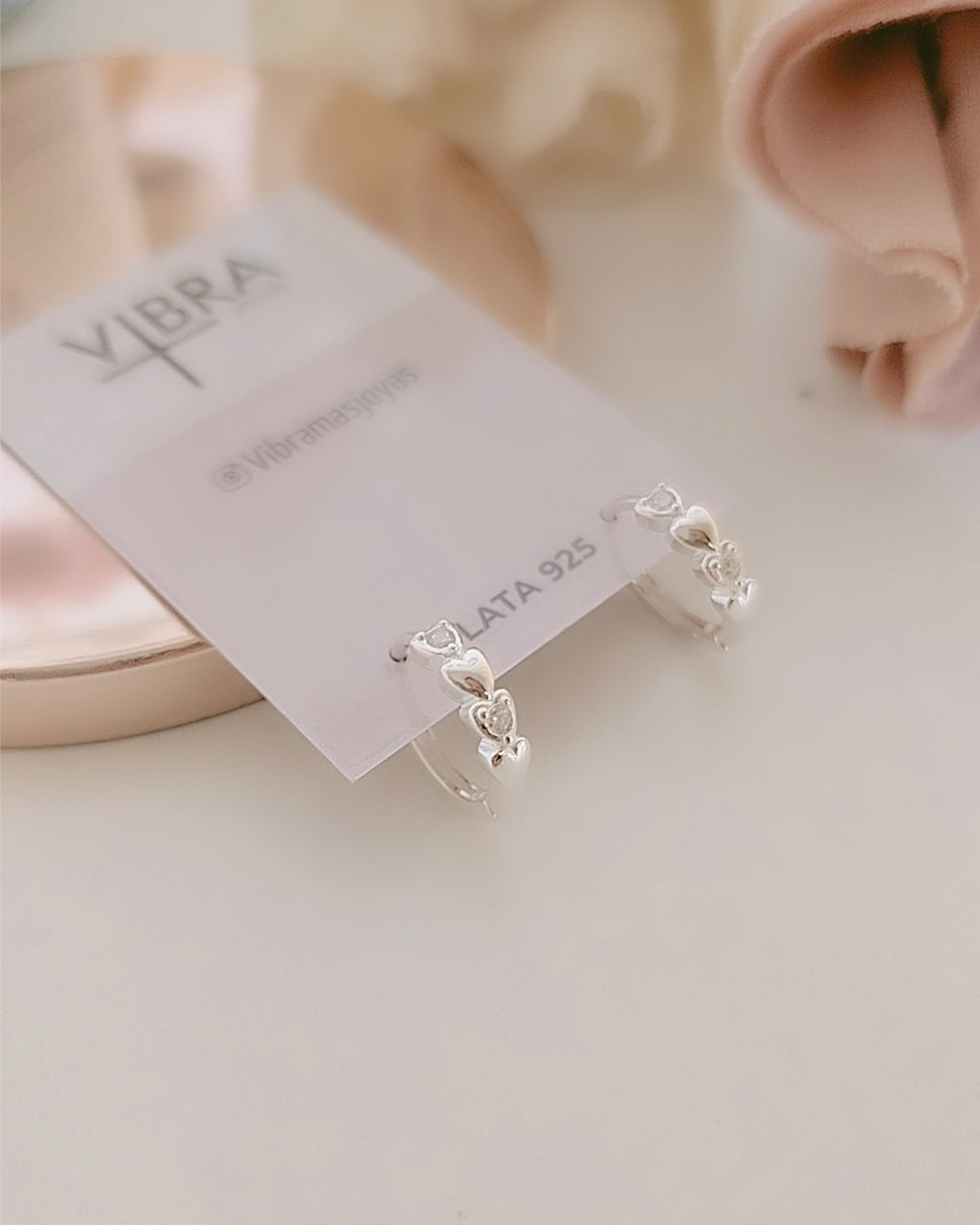 Argollas de Plata 925 con 2 corazones lisos y 2 de cubics cristal